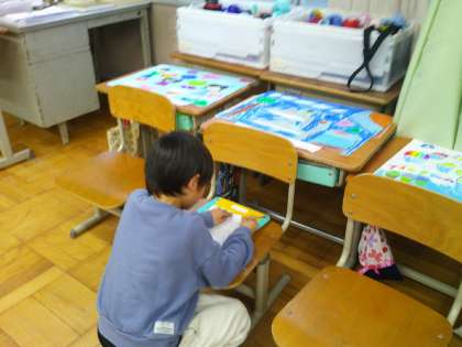 何にでも乗れるとしたら、何に乗りたいかな?どこへ行きたいかな?いろいろな想像をふくらませてできた作品を鑑賞しました。