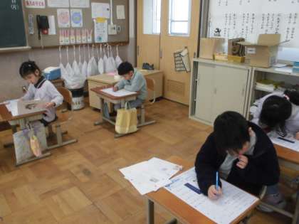 今日は国語と算数のテストをしました。