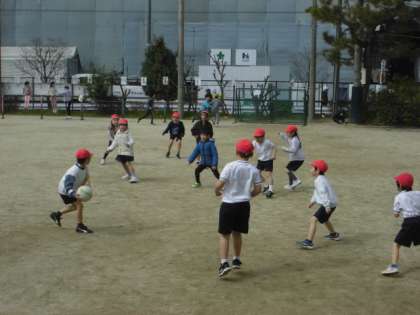中間休みにドッジボールを楽しむ子どもたちの様子です。
