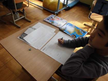 3くみは しゃかいの クイズまとめを していました。