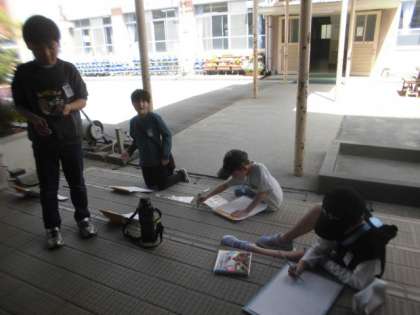 校庭のあちこちに出て