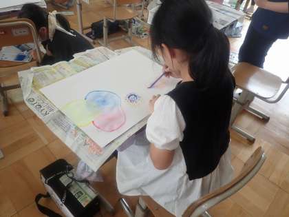 図画工作科では、絵の具でゆめもようという学習をしました。