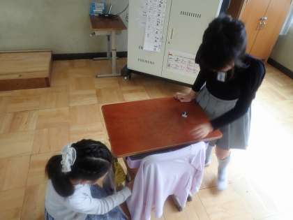 昨日は、みんなで消しゴム飛ばしで遊びました。