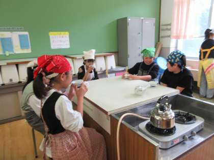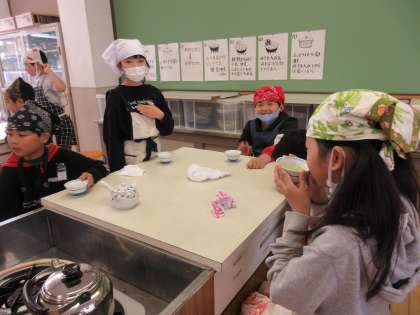 「苦い!」「ホッとする味」など、それぞれお茶を楽しんで味わっていました。