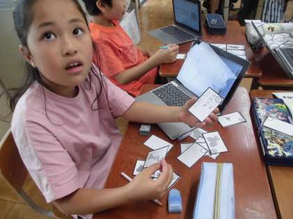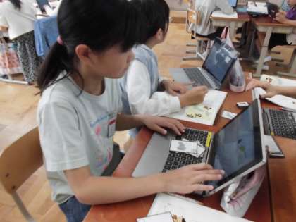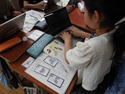 まずはパソコンを使って各都道府県の特徴を調べています。