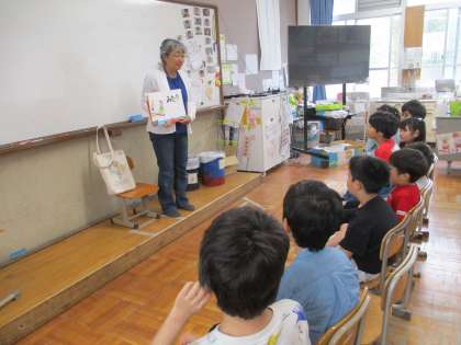 ひまわりがっきゅうのみなさんは よみきかせが だいすきです。
