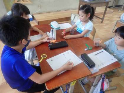 校庭の砂・じゃり・砂場の土を比べて実験をしました。