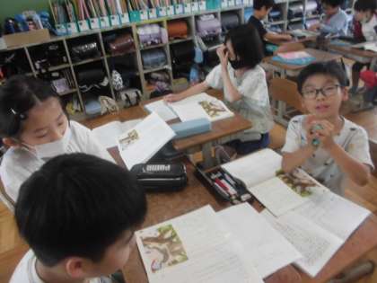 みんなで協力して「まいごのかぎ」を読んでいます。