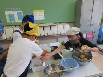 「ゆでいも」「青菜のおひたし」をつくりました。