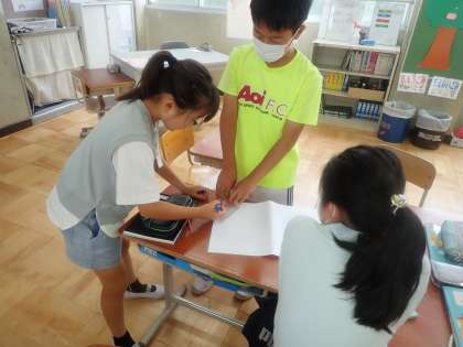 四角形をどのように描くといいのか、班で考えました。