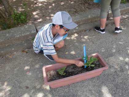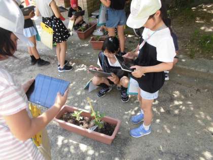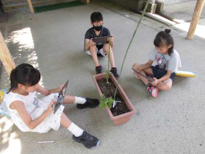 茎の長さや葉の数・大きさなど前回と比べて成長しているところを観察します。