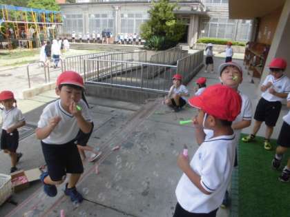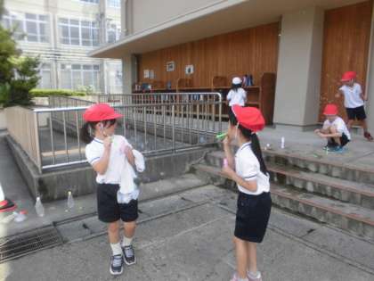 水遊びやシャボン玉、みんな思い思いに楽しんでいました。