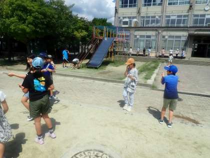 理科では、外に出て水を使って学習を進めました。