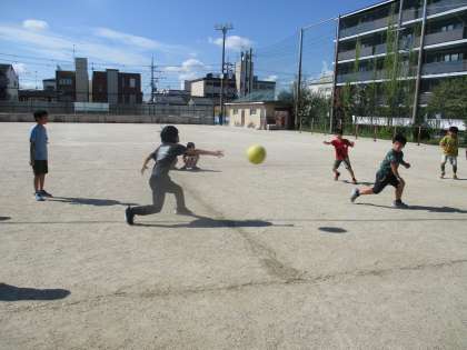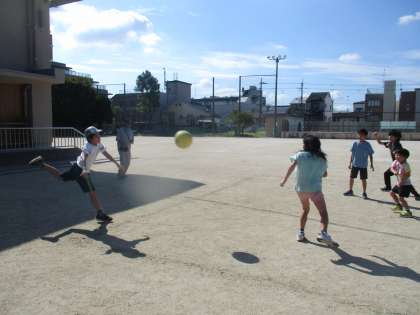 きょうの あさの うんどうは ドッジボールでした。