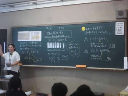 3年2組で「あまりのある割り算」の研究授業を行いました。
