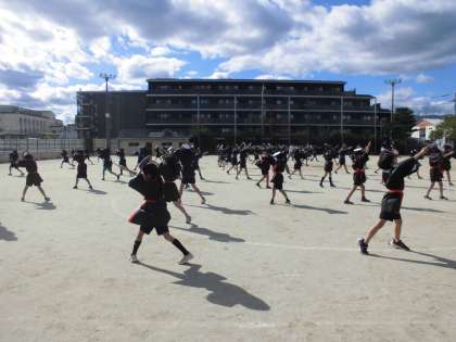 今日は初めて法被を着て練習をしました。