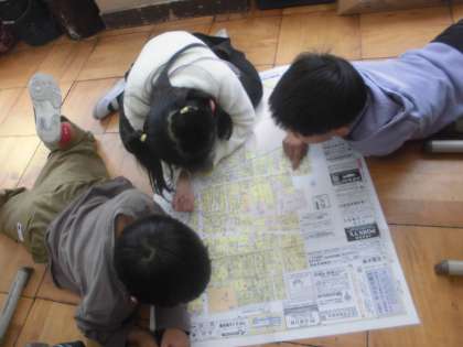 地図を眺めて、朱八のk\町のステキを探しています。