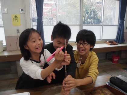 「ゼリーがふっとんだ!」と興奮している子どもたち。