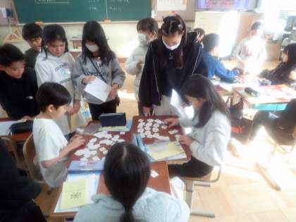 チーズを振りかけたりして、オーダー通りのピザをグループで協力して作っています。