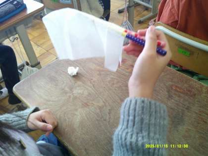 おはしの正しい持ち方や使い方を学びました。5本の指はどのように動かせばよいのか、食品によって「つまむ」「すくう」「ひっくり返す」「切り開く」の使い分けが必要なことを知りました。これからの食事のときに、今日学んだことを生かしていけるといいですね。