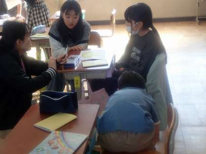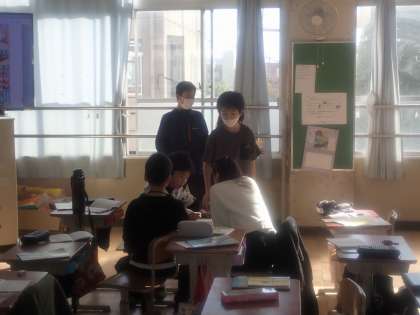 これまで学習してきた英語を使って、何を言うのかどう言うと喜んでもらえるかなど子どもたちはそれぞれ考えていました。