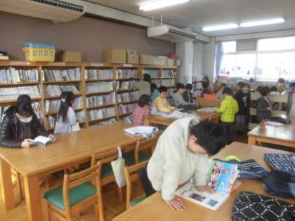 今日は1組・2組合同で図書室を楽しみました。