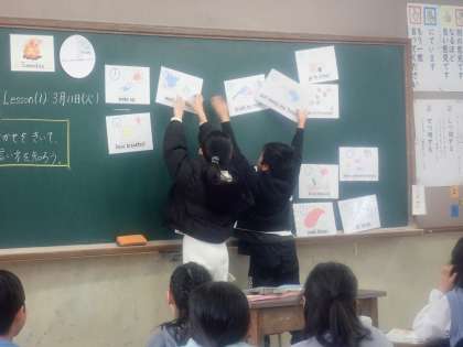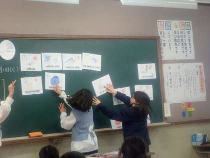外国語科は、ペアで協力して時間内に並べ替えをしました。