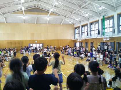 6年生に手をつないでもらって入場、そのあとも○×クイズやじゃんけんゲームなど、楽しい時間を過ごすことができました。たくさんの人たちに入学を祝ってもらいました。学習に運動に給食に・・・いろいろなことに「レッツ・トライ」で頑張ります。