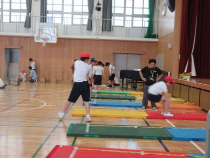 反復横跳びや、立ち幅跳び、ソフトボール投げも頑張っていました。