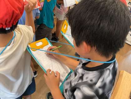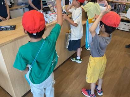 なかつか文房具さんにインタビューに行きました。子どもたちは、様々な種類の文房具や物に興味を持って見回っていました。学校で考えてきたインタビューをさせていただき、初めて知ることに、びっくりしたり、フンフンと聞いていたりしました。インタビューの中で、創業101年と聞き、子どもたちはとてもびっくりした様子でした。