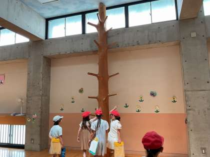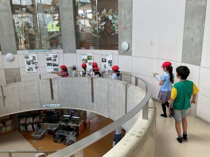 園児さんのかわいい姿や興味をひくような掲示物に興味津々の子どもたちでした。