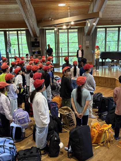 天候が良くなかったので、館内で入所式を行いました。