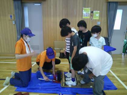 瓦礫や家具などの下敷きになってしまった人をどのように助けるのかを教えていただきました。