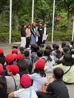 他校と一緒に朝の集いを行い、それぞれの学校紹介を行いました。