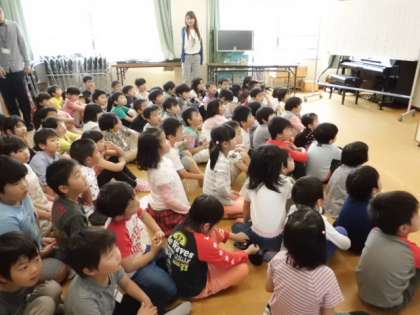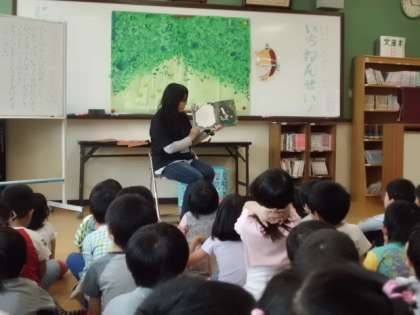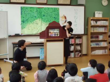 大きな紙芝居にびっくりしたり,手話の歌を聴かせていただいたり,とても楽しいひと時を過ごせました。今度は各クラスで楽しい絵本の読み聞かせをしていただけます。今からとても楽しみにしています。