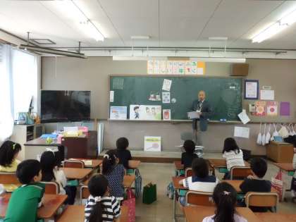 中京署の方が来て下さり,2年生と5年生を対象に非行防止教室が開かれました。2年生に対しては,「知らない人について行かない」「お店の物を持って帰ったらあかん」「バスは順番に乗りましょう」「バスの中のマークを見てね。ここは誰がすわるのかな」など学習をしました。