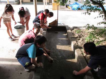 水がたまり、毎年夏になると、ぼうふらがわいたりして大変らしいのですが、今年はその心配もなさそうなくらいきれいになってました。保健室からゴム手袋を借りて大掃除してくれている姿に最高学年としての風格がみられました。