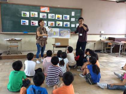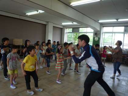 3年生の英語活動が始まりました。英語のリズムにのって体を動かし、声を出し・・・子どもたちは最初からノリノリです。「元気だよ!」という“Pretty good!”という声も中庭まで元気よく響いていました。 後半は読み聞かせです。5匹の子ザルがベッドから1匹ずつ落ちていくお話に子どもたちはがグッとひきつけられ,♪Five little monkeys jumping on the bed ♪といつの間にか覚えたフレーズをリズムにのせて歌っていました。笑顔いっぱいの1時間でした。