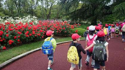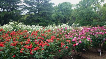 色々な大きさや名前,多くの色のバラが美しく咲いています。