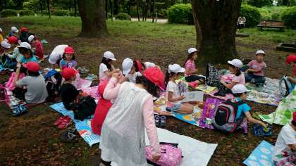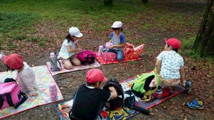 植物園の芝生広場でお弁当を食べました。楽しく活動して,お腹がペコペコです。