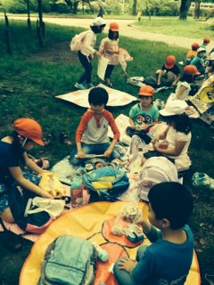 1・2年生のお弁当は,たてわりのなかよしグループで食べました。