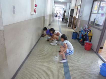 今週の掃除時間はぴかぴか大作戦です。廊下も階段もぴかぴかになるように頑張っています。