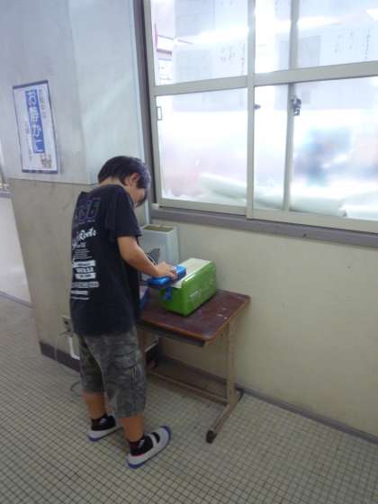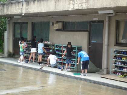 くつばこも丁寧に掃除をします。黒板消しも廊下にあるクリーナーできれいにします。