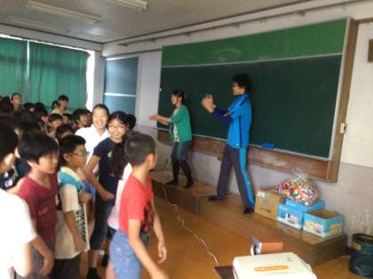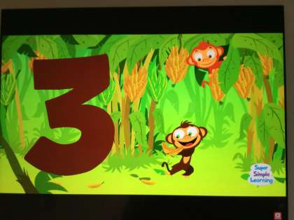 5年生では,1〜20までの数に慣れ親しんでいます。全員が楽しそうにリズムにのって,大きな声で数を数えています。動画に合わせて20まで言えた時には,大きな拍手がおこりました。モンキーがバナナを数える場面では、先生も子どもたちもジェスチャーをつけて歌っています。「楽しみながら言っているうちに、いつのまにか覚えてしまう・・・」そんなイングリッシュシャワーをいっぱい浴びたひとときでした。