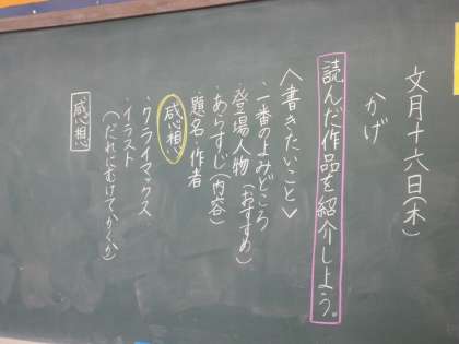 今日は読んだ作品「かげ」の感想を書く学習をしました。