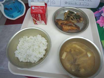 7月16日の給食は「麦ごはん、牛乳、はたはたのこはくあげ、伏見とうがらしのおかか煮、もずくのみそ汁」です。はたはたは、秋田県の郷土料理に欠かすことが出来ない食材ですが、給食では初めて使います。生姜醤油に浸けてこんでから、粉をつけて油で揚げます。カラっと揚がったはたはたは骨ごと尾っぽまで全部食べることが出来ます。またおかか煮に使った伏見とうがらしは京都産のものです。江戸時代から伏見で栽培されてきた京野菜です。辛味がないので、「伏見甘」とも呼ばれてきました。「はたはたがカリカリしていて美味しい。中はふんわりしている。尾っぽまで味が滲みていて美味しい。」「はたはたのこはくあげは尾っぽまで美味しかった。生姜の味がしていて、味に工夫しているのがよくわかりました。」・・・子ども達の感想より