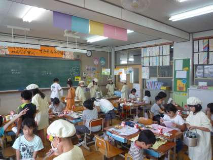 4年生になると,配膳がスムーズです。てきぱきと配って,しっかり食べます。