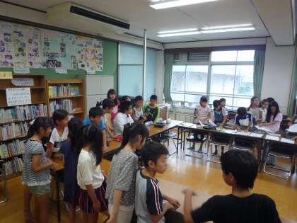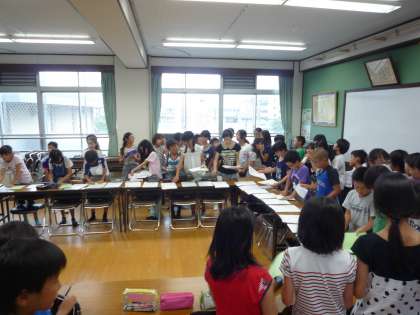 5年生は夏休みあけの8月27日から31日に花背山の家に行きます。今日は5年生みんなでしおり作りをしました。ふれあいサロン前には上靴をぬいできれいに子どもたちが並べていました。子どもたちの気持ちが表れているようでした。