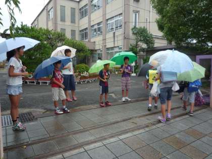 今日から計画委員会のあいさつ運動が始まりました。夏休みあけ,子どもたちは,まだちょっと元気がありません。計画委員会の子どもたちの元気な「おはようございます」の声で朱八校のみんなも元気にあいさつができるようになってほしいです。