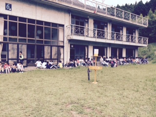 入所式の後,宿泊棟に入りました。自分たちの部屋に大きな荷物を置いて,お弁当は外でいただきました。花背のお昼の気温は26度くらいです。保護者の皆様,朝早くからお弁当を準備していただき,ありがとうございます。